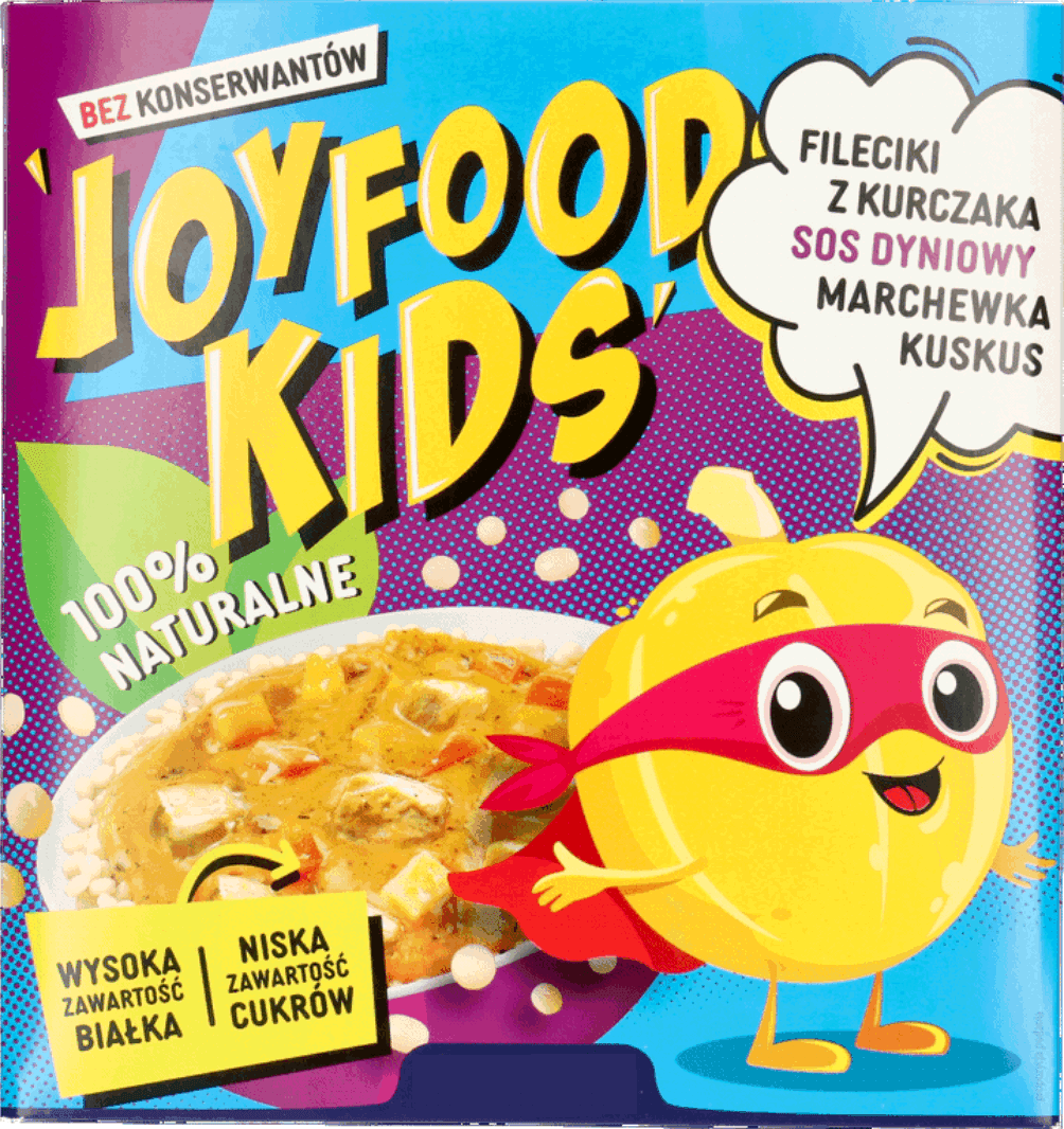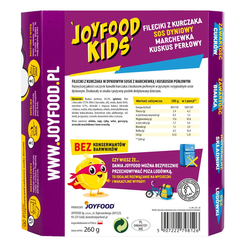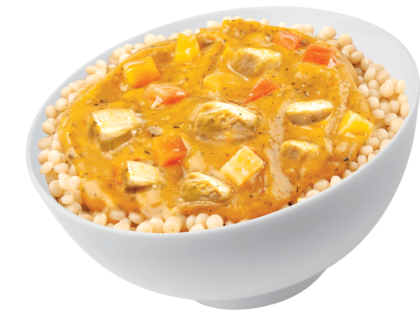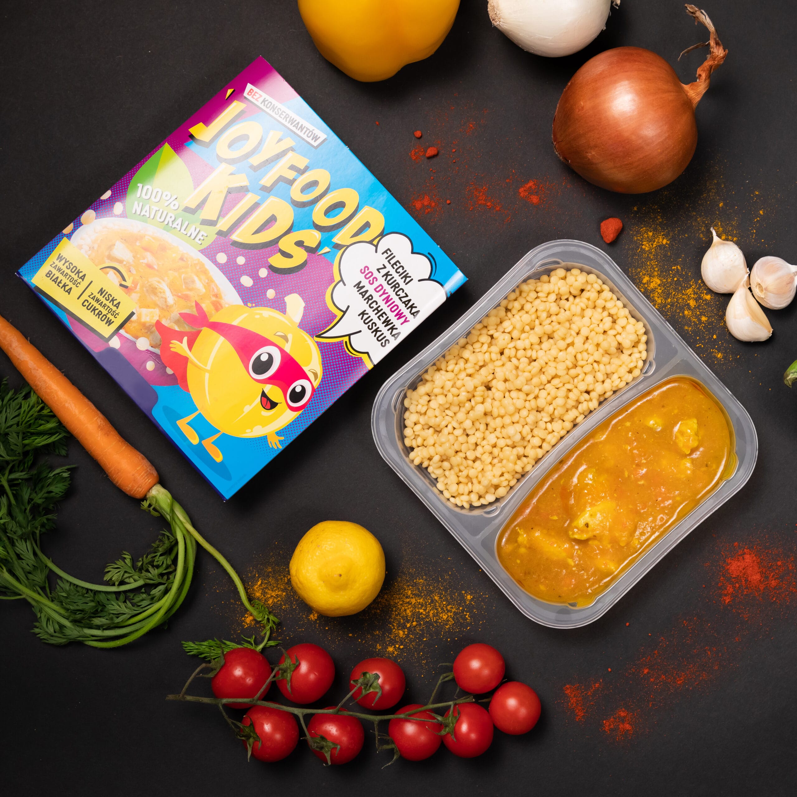 Mâncare ready meal: Fileuri de pui în sos de dovleac cu couscous gama PapoKIDS®.